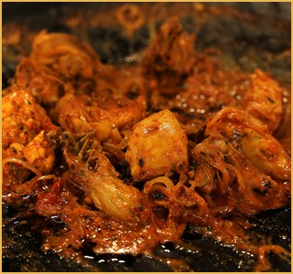 Spicy and flavorful chicken tikka cooked on a tawa with aromatic spices.
