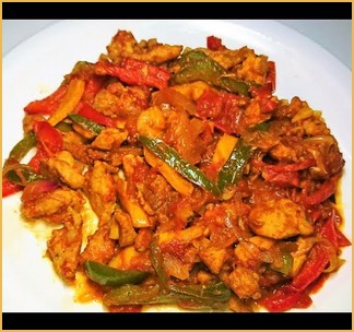 Shredded boneless chicken cooked with a medley of spices in Nawaz's special style.