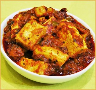 Cubes of paneer tikka in a buttery tawa masala gravy, perfect for vegetarians.